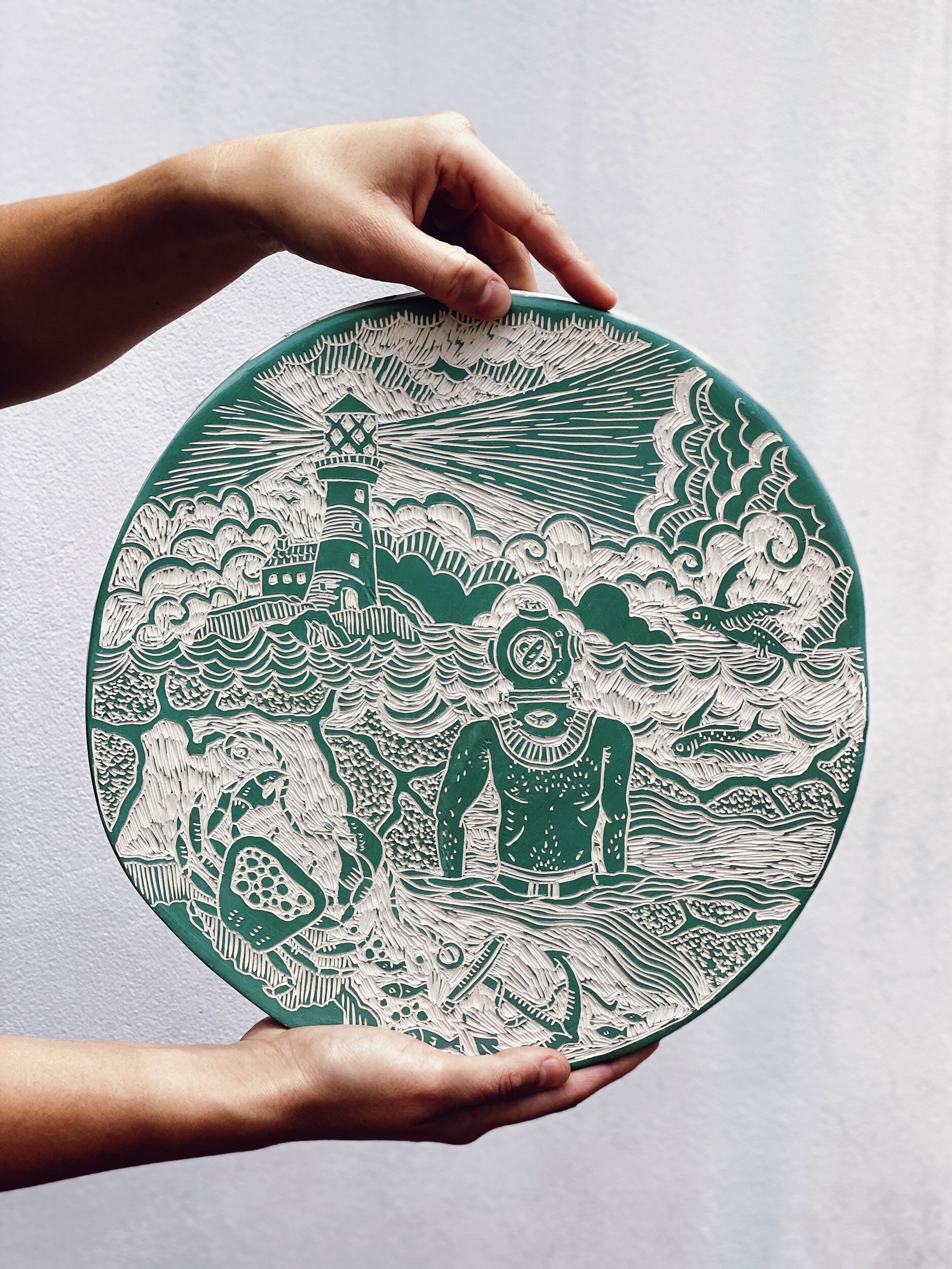Made by Chiara Zoppei in earthenware and decorated with the sgraffito technique.